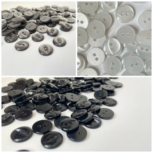 Black, White & Grey Plastic Fisheye Buttons - 11.5mm - For Knitters