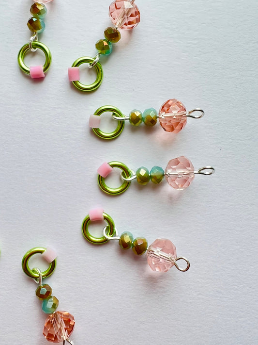 Blossom Pink Crystal Knitting Notions with Aqua and Gold Accents