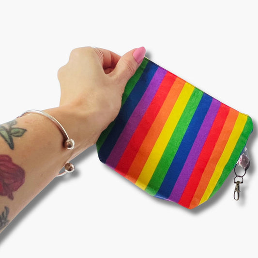 Rainbow Floral Knitting Project Bag for Socks & Small Crafts - Cotton Fabric