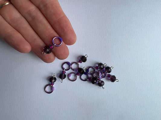 Purple Glass & Lilac Knitting Stitch Markers for Socks & Lace - Sugar Plum
