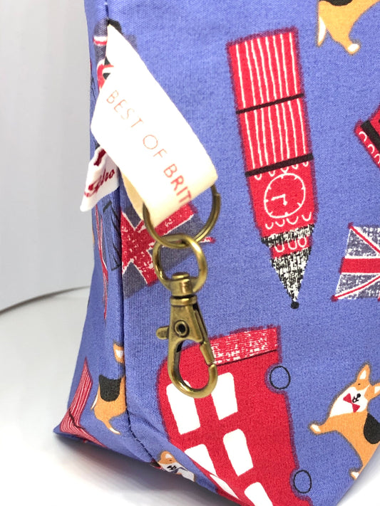 Handmade Retro London Corgi Notions Bag - Red White & Blue