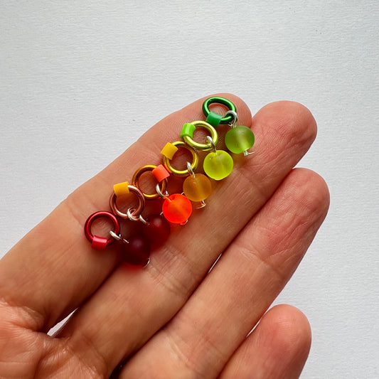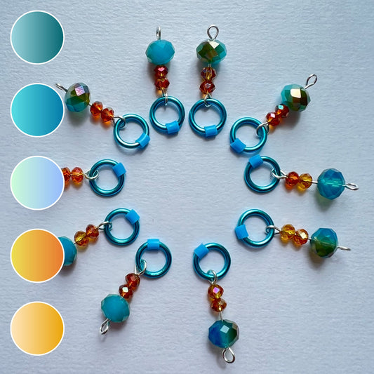 Knitting stitch markers in blue and orange crystal - Pumpkin Sky