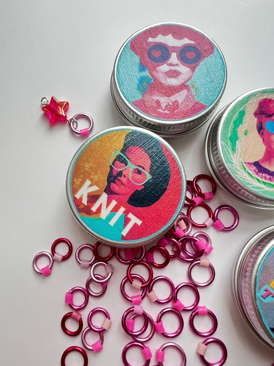 Whether you're a knitting novice looking for your first set of Stitch Markers or want to gift the RosyRetro® Knitting Starter Set tin to a crafty friend, these vintage-chic stitch markers are sure to delight!