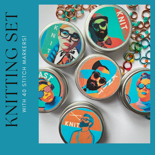 Knitting Set 40 Markers and Tin - Hipster Teal