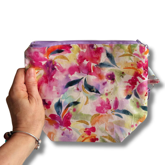 Knitting project bag with zipper - Watercolour Flowers