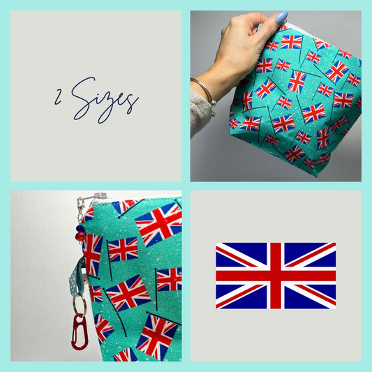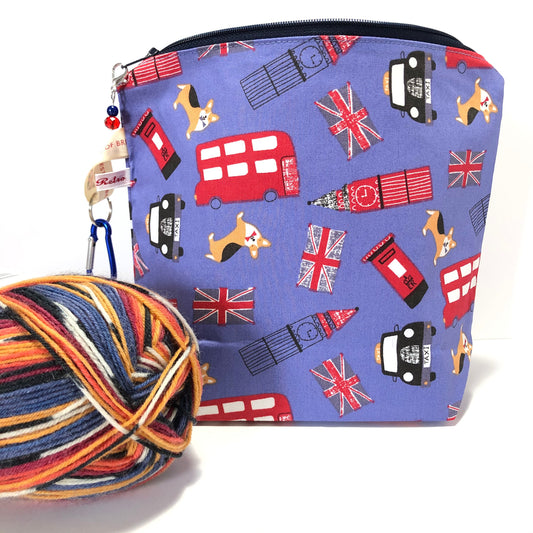 Knitting Sock Project Bag , cotton with zipper and retro British fabric