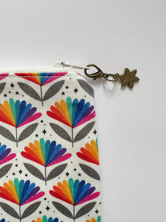 Rainbow Floral Knitting Project Bag for Socks & Small Crafts - Cotton Fabric