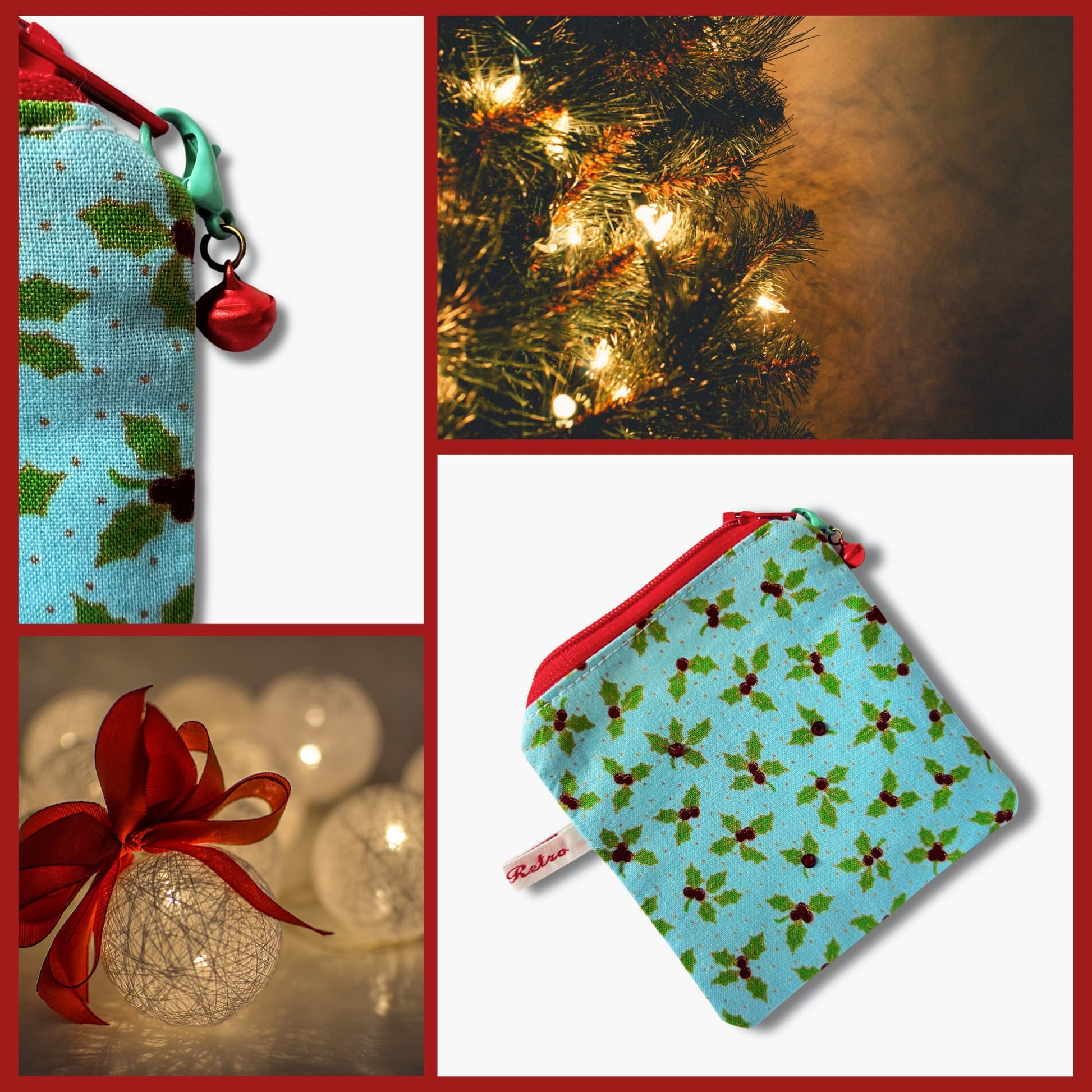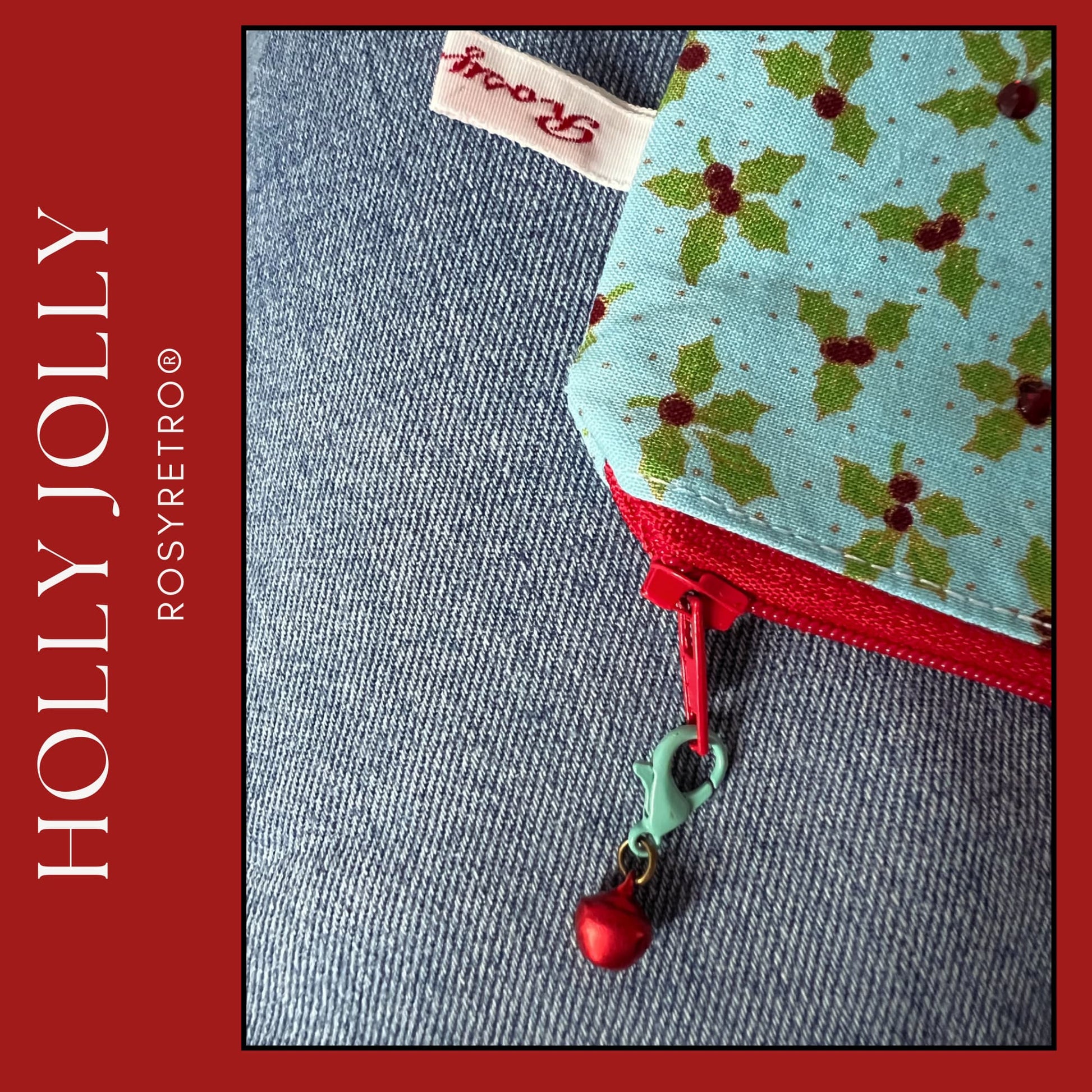 Christmas Knitting Purse - Perfect for Notions! Holly Jolly Aqua