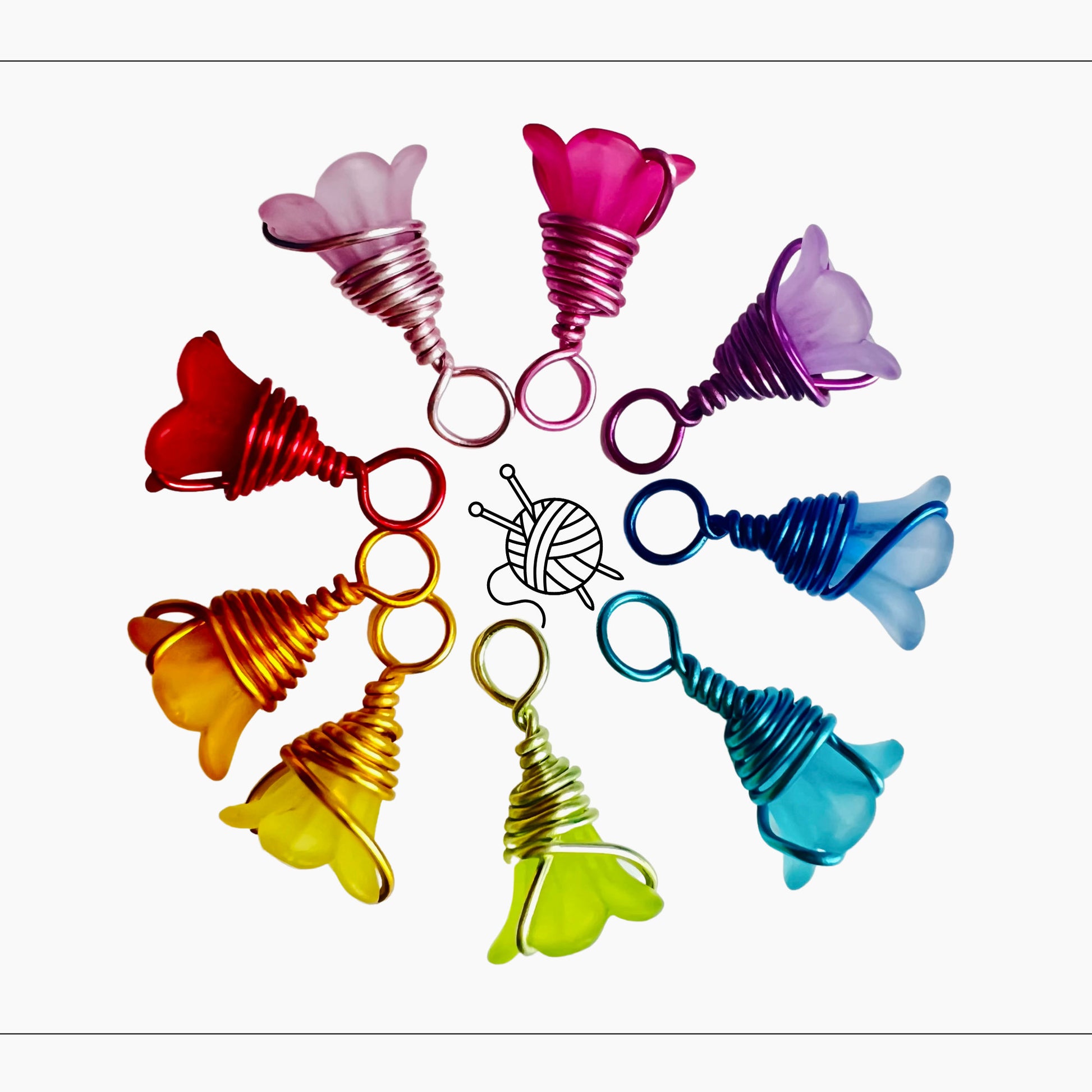 Flower Stitch markers, Rainbow flowers with bespoke handcrafted wire wrapped loops!
