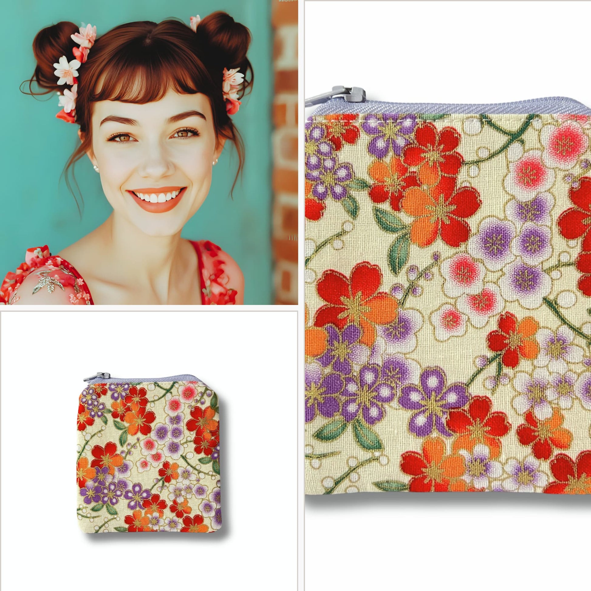 Tropical florals in pale pinks and whites pop against the champagne cream background.